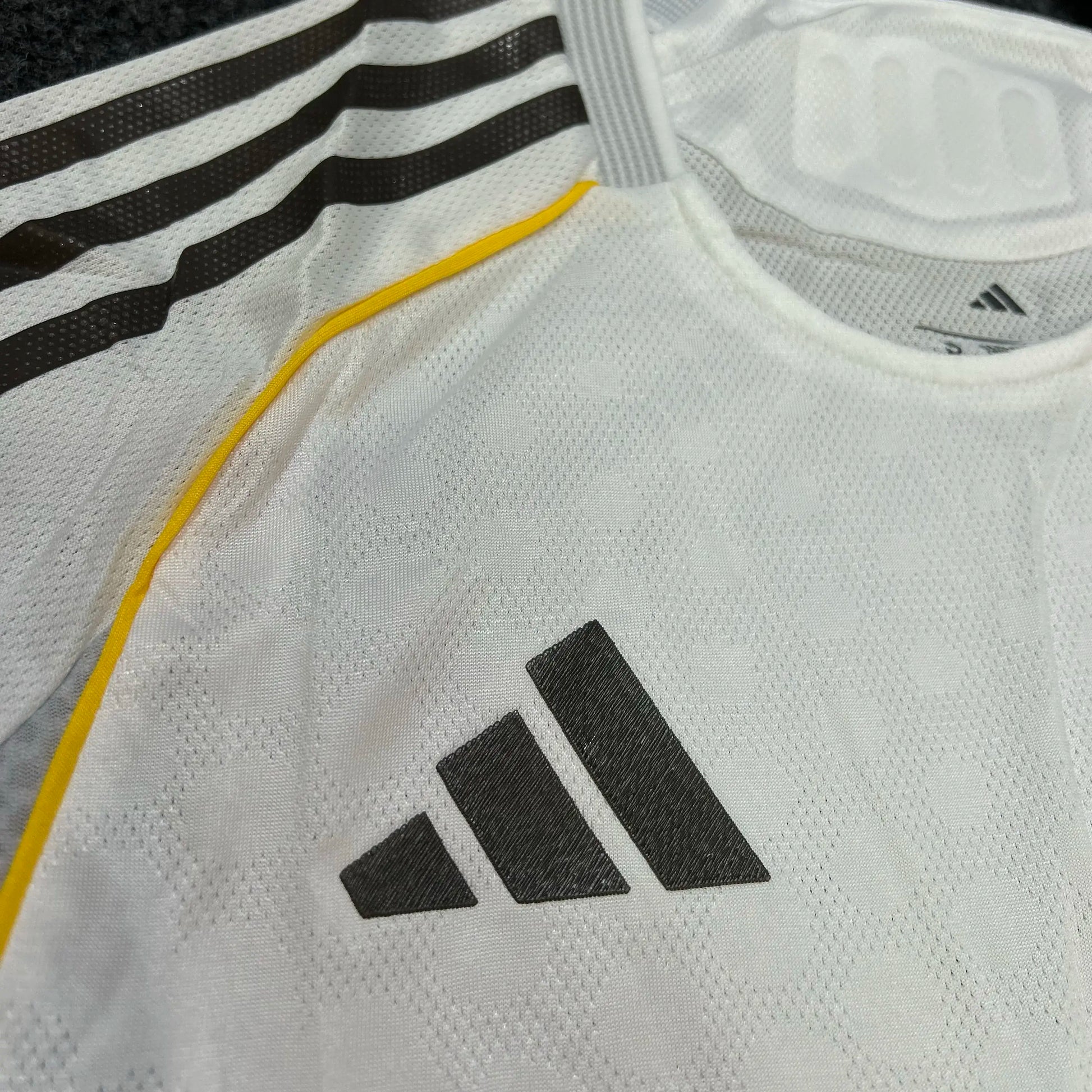 Elegance. Power. Legacy. The Real Madrid 2025/26 Home Jersey continues the club’s tradition of iconic all-white greatness with a modern twist. Clean lines, premium fabric, and subtle gold accents celebrate the royalty of European football. Designed for champions and worn with pride, this jersey reflects the spirit of Madrid — where excellence is expected and history is made.